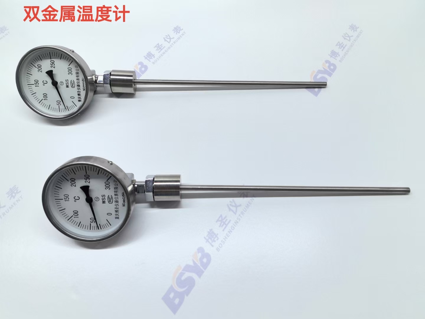 公司設計生產BSWSS工業雙金屬溫度計,產品規格品種齊全,包含普通的雙金屬溫度計,電接點式,萬向型,帶遠傳的雙金屬溫度計和帶4~20mA輸出的雙金屬溫度計。安裝方式種類齊全,套管規格多,完全能夠滿足客戶的定向需求。同時為了適應市場需求,設計雙金屬溫度計與套管分離,以保證在不停機的前提下,更換雙金屬溫度計。
