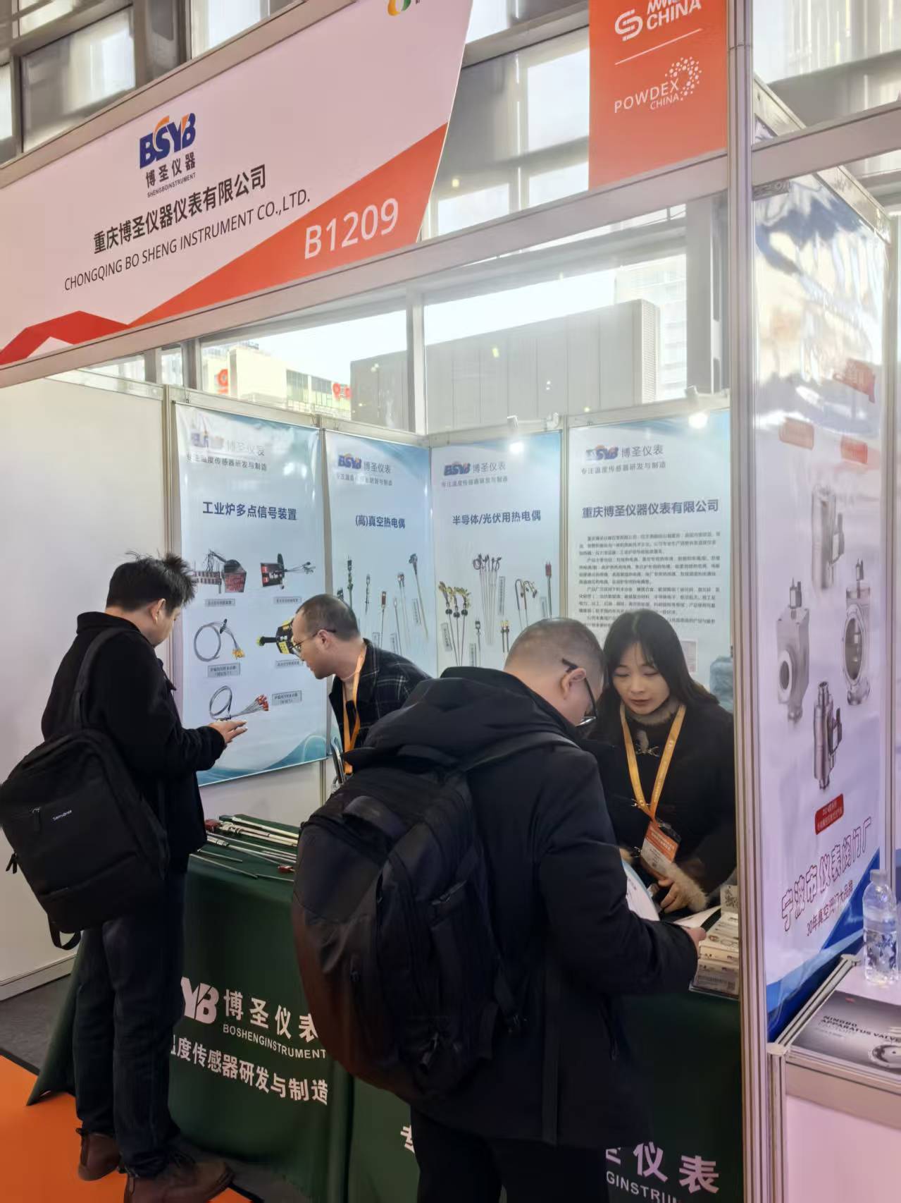 展會期間,博圣儀器儀表的B1209展位持續(xù)迎來行業(yè)觀眾駐足:國內(nèi)先進(jìn)陶瓷企業(yè)、裝備制造商的技術(shù)負(fù)責(zé)人,圍繞 “陶瓷生產(chǎn)溫度精準(zhǔn)調(diào)控” 與現(xiàn)場團(tuán)隊深入研討;同時,多位國際客商也專程到訪展臺(如圖中海外客戶),重點咨詢高溫傳感器的定制適配方案,現(xiàn)場交流覆蓋產(chǎn)品性能、場景適配、批量合作等多維度。